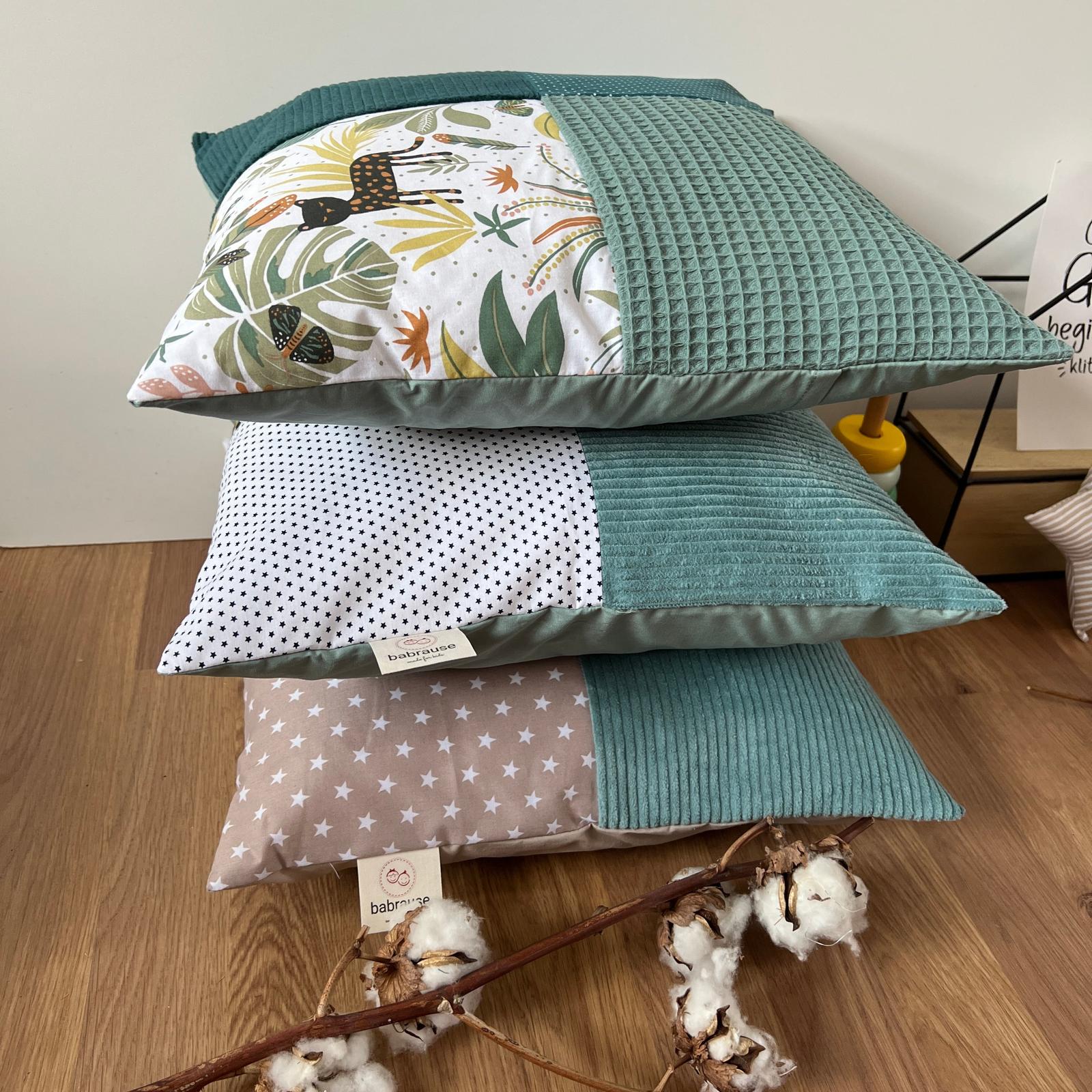 Die Kissen haben eine ideale Größe von 40 cm x 40 cm, perfekt für kleine Kinderköpfe. Sie sind formstabil und können dank des praktischen Hotelverschlusses schnell und einfach gewechselt und gewaschen werden.