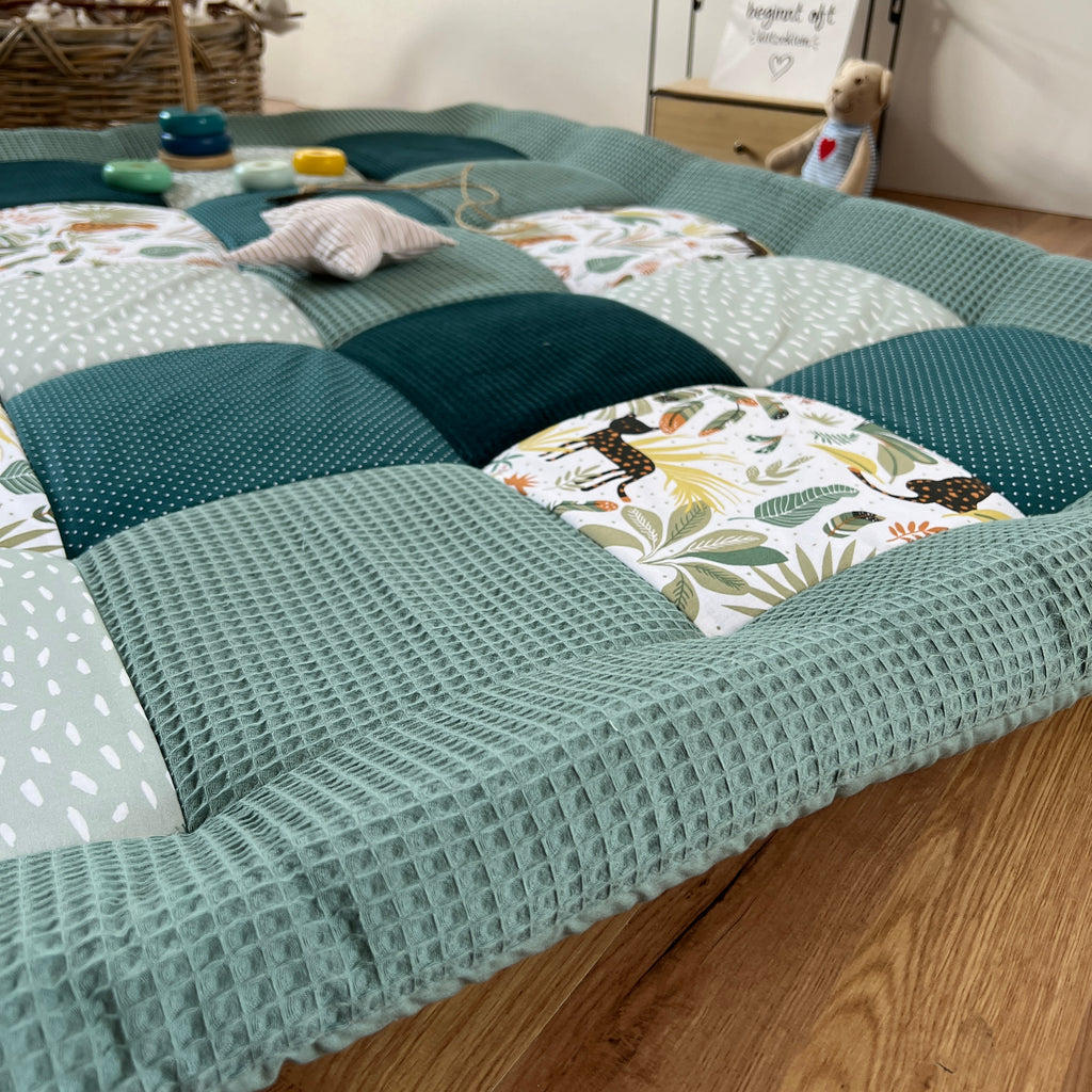Einzelstück - 160x140 Krabbeldecke Waffelpique Dschungel Petrol-babrause
