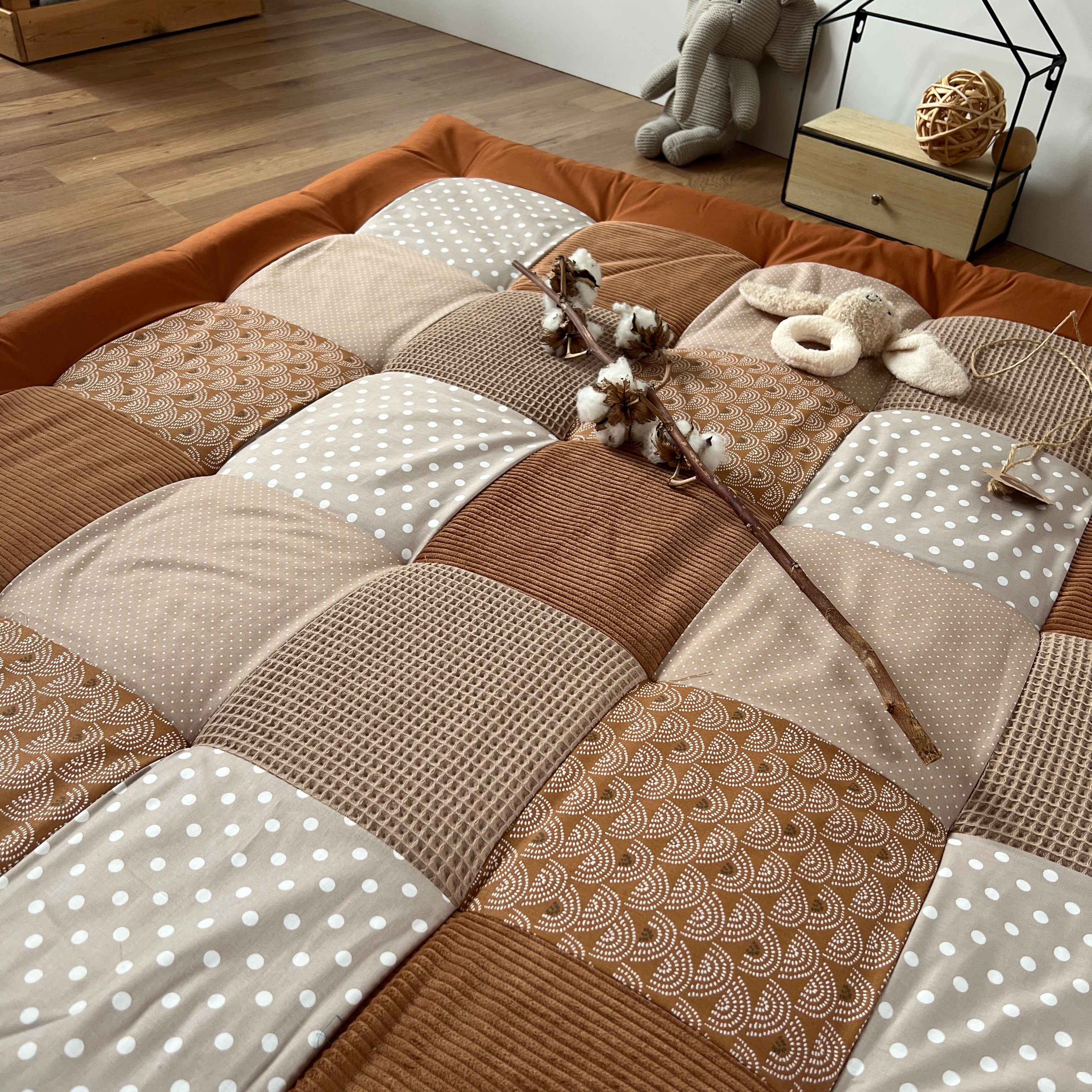 Einzelstück - 100x100 Krabbeldecke Regenbogen Sand Rost