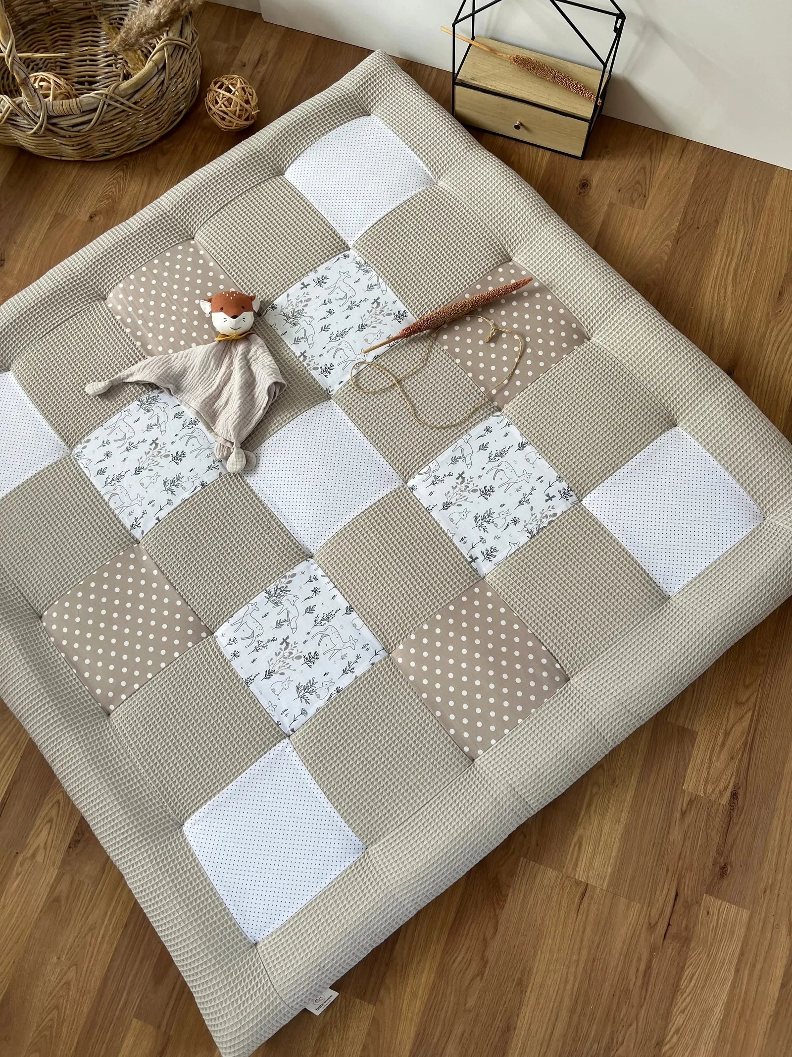 Einzelstück - 140x140 Krabbeldecke Waffelpique Waldfreunde Beige Creme